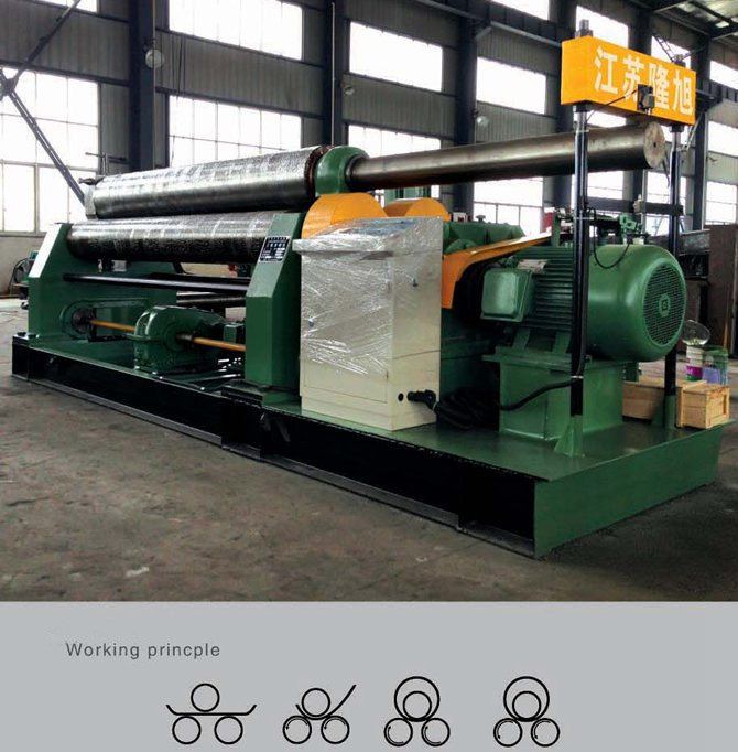 The machine adopts 3-roller symmetrical structure with the upper roller moving vertically in the center between the two lower rollers.