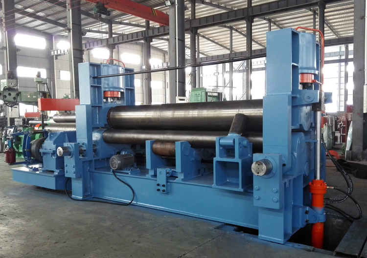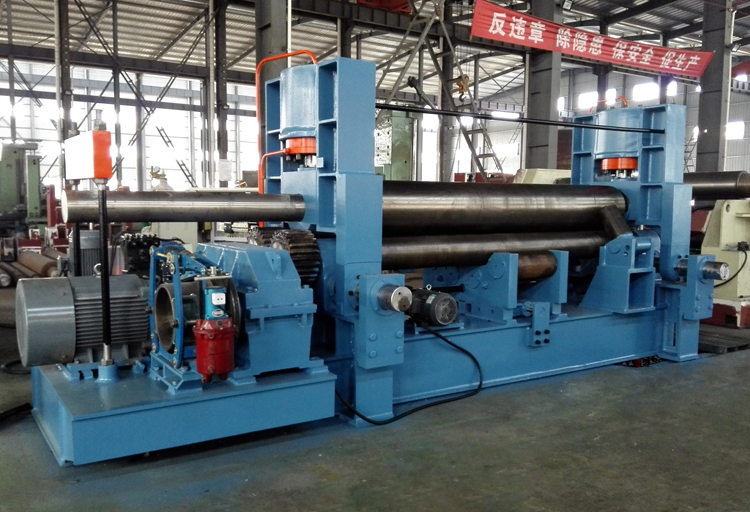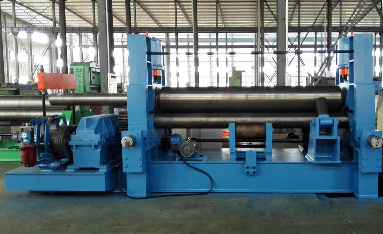 上輥成鼓形狀,下輥的下部有托輥配合調節(jié),從薄板到厚板這一廣泛的范圍內能夠卷制直線度很高的制品;
